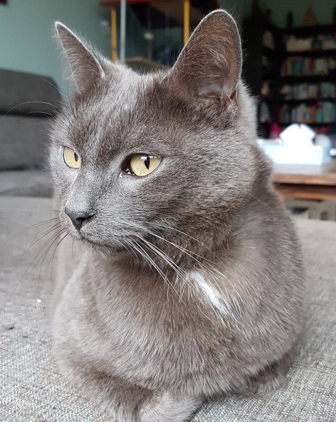 Onze kat Sterre is doodgereden op de weg voor ons huis. Pas maanden na haar dood ontstond er een beetje ruimte om na te denken over een nieuw maatje voor onze andere kat. Op de website van het asiel zagen wij een foto van een eigenwijs grijs katertje genaam Bowey dat op zoek was naar een nieuw thuis. We vonden het een prachtig beestje en spraken af dat manlief zou gaan kijken.
